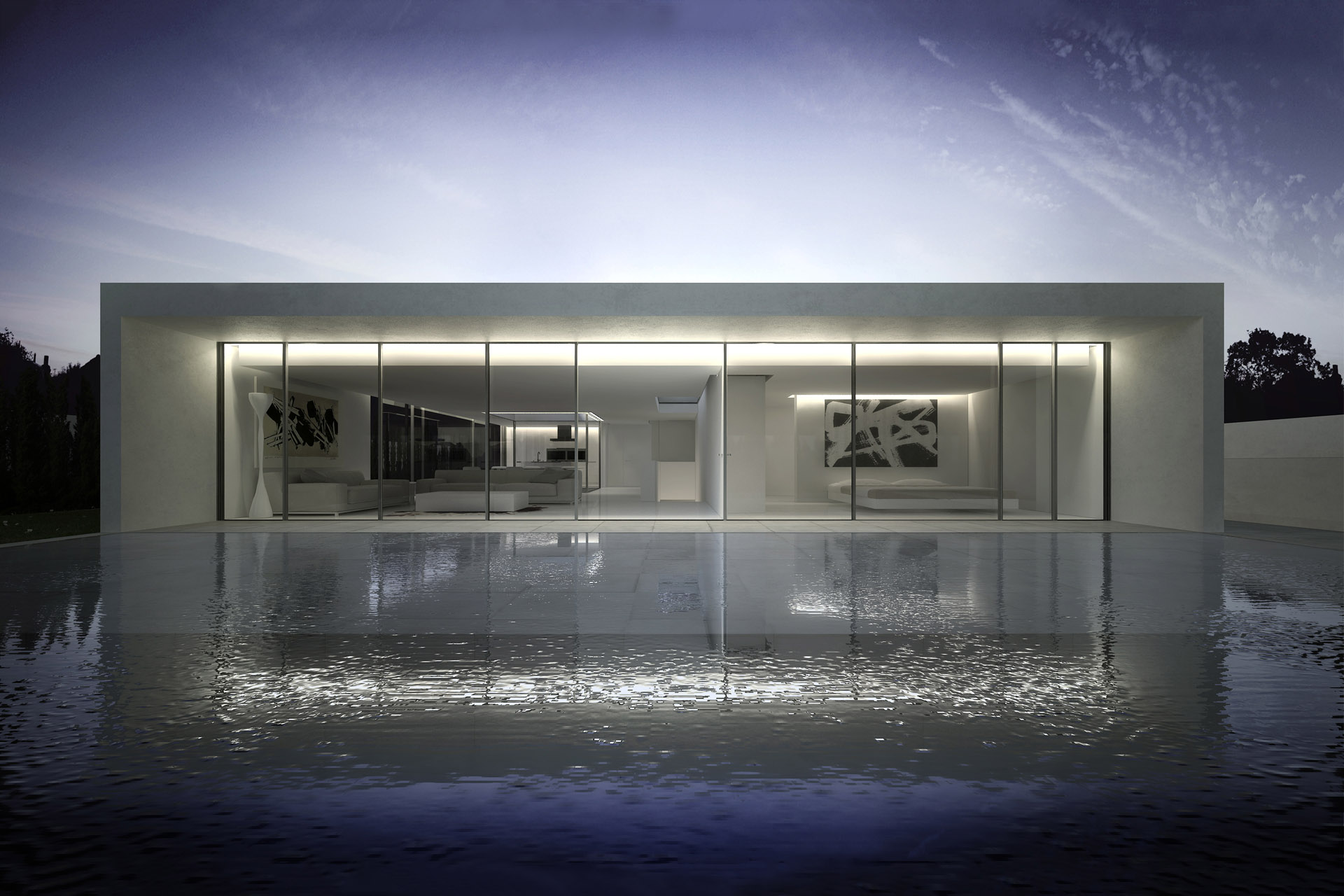 The swimming pool allows to extend its surface and to generate a sheet of water, achieving through it to extend the reflection producing an effect of mirror of the house. This phenomenon manages to multiply the visuals, from the interior the sky is reflected, and from the swimming pool the house is perceived.