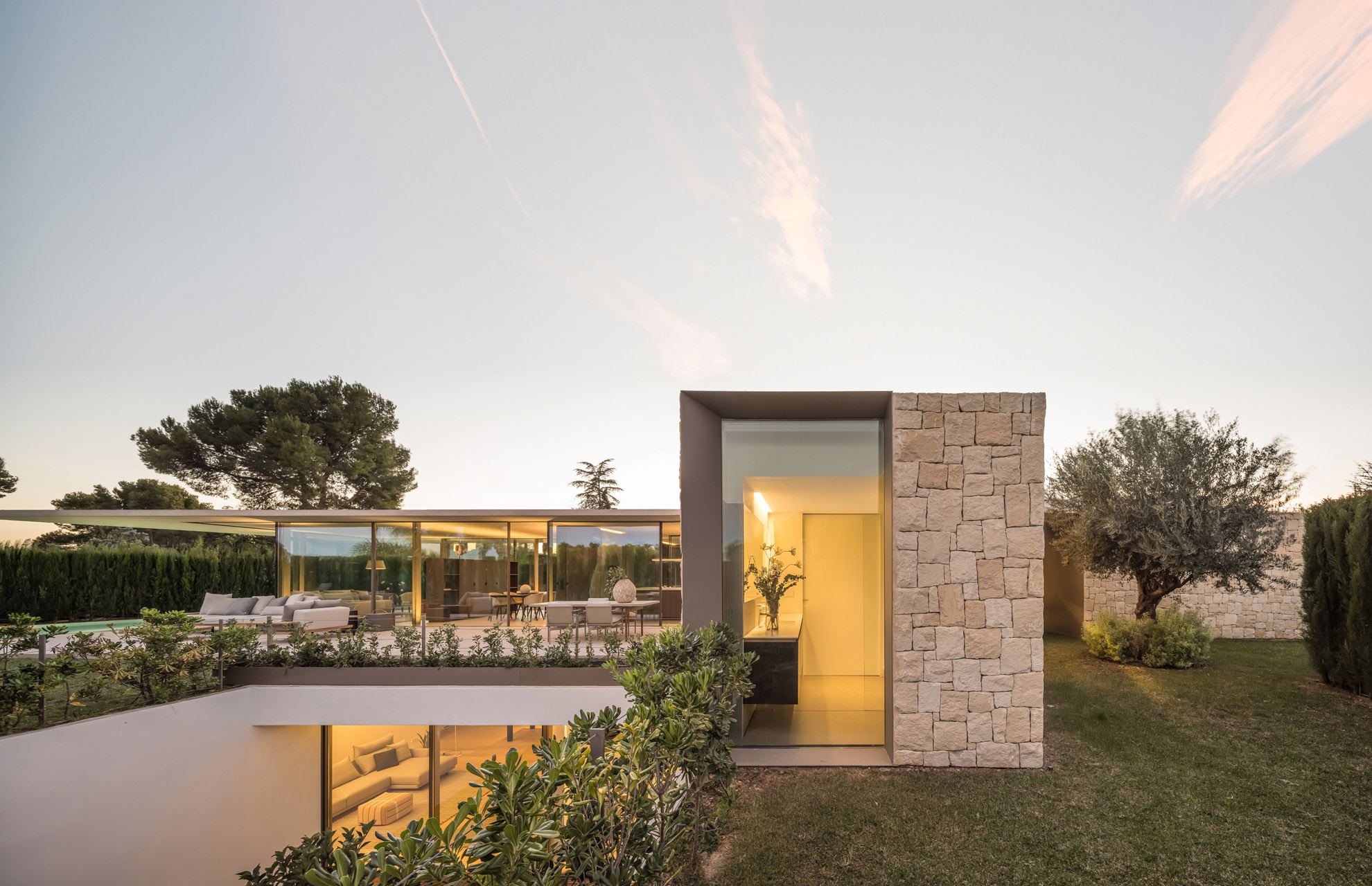La vivienda no puede desarrollarse sin tener en cuenta elementos naturales y materiales con los que se ha concebido y dado forma al proyecto. Por ello, la luz natural, los reflejos que aporta el agua de la piscina, la elección de la vegetación, el mobiliario o los materiales empleados son clave para el resultado final de la casa.