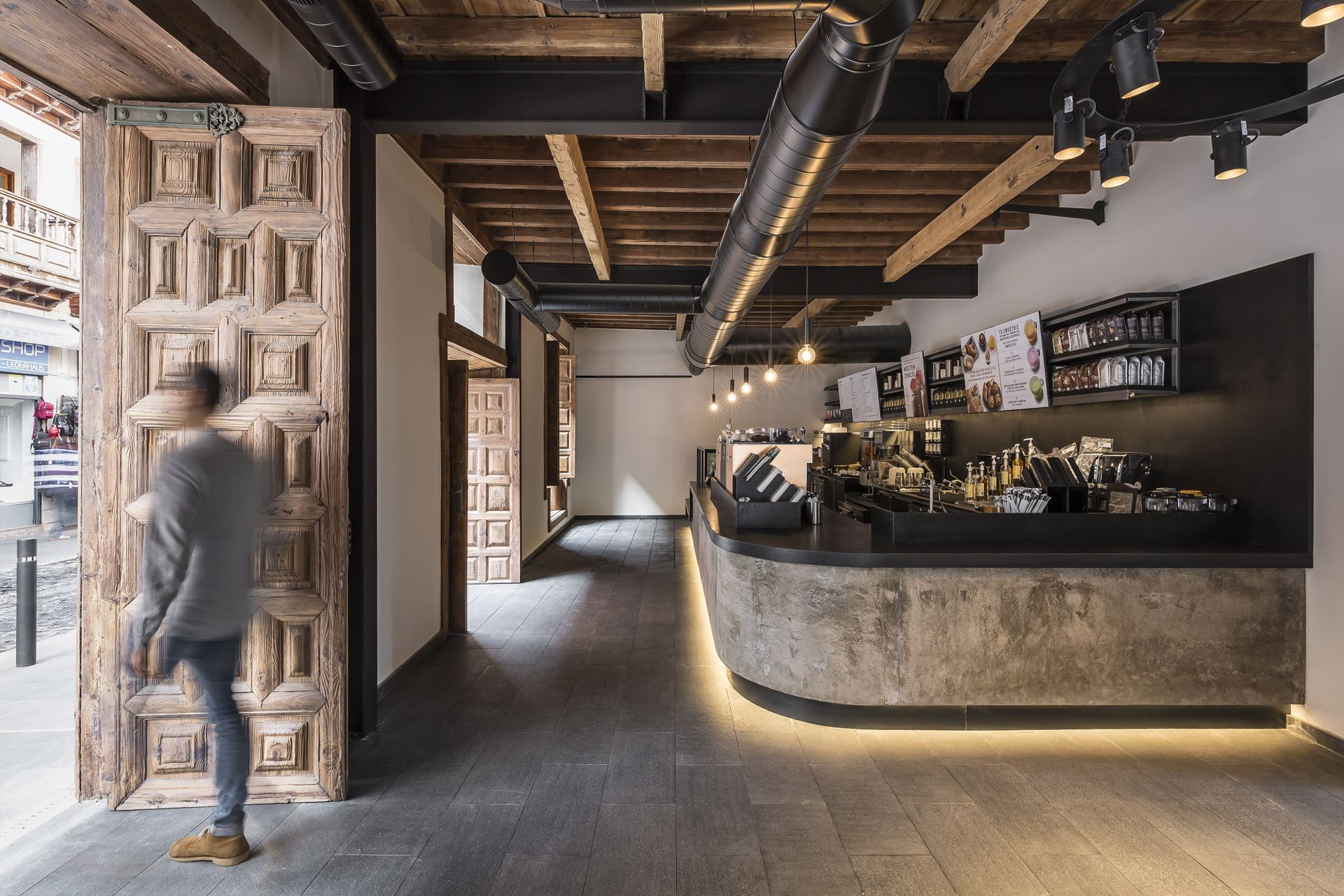 El diseño del mobiliario en las distintas zonas trata de trasladar la sensación del usuario a la comodidad del ambiente doméstico. La iluminación, cálida e intimista, trata de reproducir en distintos puntos atmósferas de recogimiento, con reagrupaciones de butacas junto a una ventana entreabierta, alrededor de una mesa y bajo el haz focalizado de una lámpara de pie. Un proyecto de rehabilitación que quiere recuperar la atmósfera de un hogar aparentemente lejano en el tiempo, bajo la luz de la isla de Tenerife, reflejada en la cálida madera de Tea.